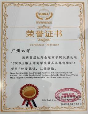 MBA项目荣膺“2019丝路全球商91论坛