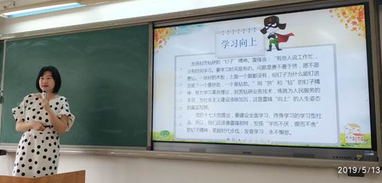 组织与人力系党支部代表付博书记以“学习雷锋精神、争当文明先锋”为主题展示了支部党课,她认为雷锋精神的时代内涵可以表述为两个字:“上”与“善”。雷锋把自己旺盛的青春全部献给了党,献给了人民,他那不可磨灭的美好形象,将永远活在我们的心中;