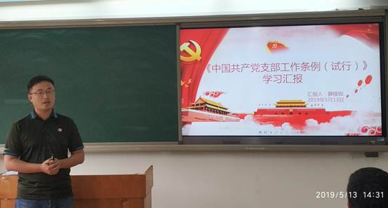 工程管理系党支部代表学习汇报了《中国共产党支部工作条例(试行)》,阐述了要紧抓履职尽责的着力点、紧抓党风廉政的关键点、紧抓基础建设的支撑点等方面的设想;